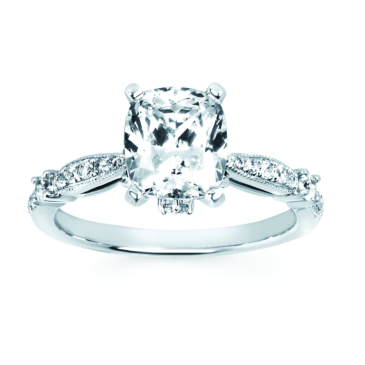 Engagement Ring Forever ElegantĀ® 1/5 Ctw. Diamond Semi Mount shown with 2 Ct. Elongated Cushion Center Diamond in 14K Gold